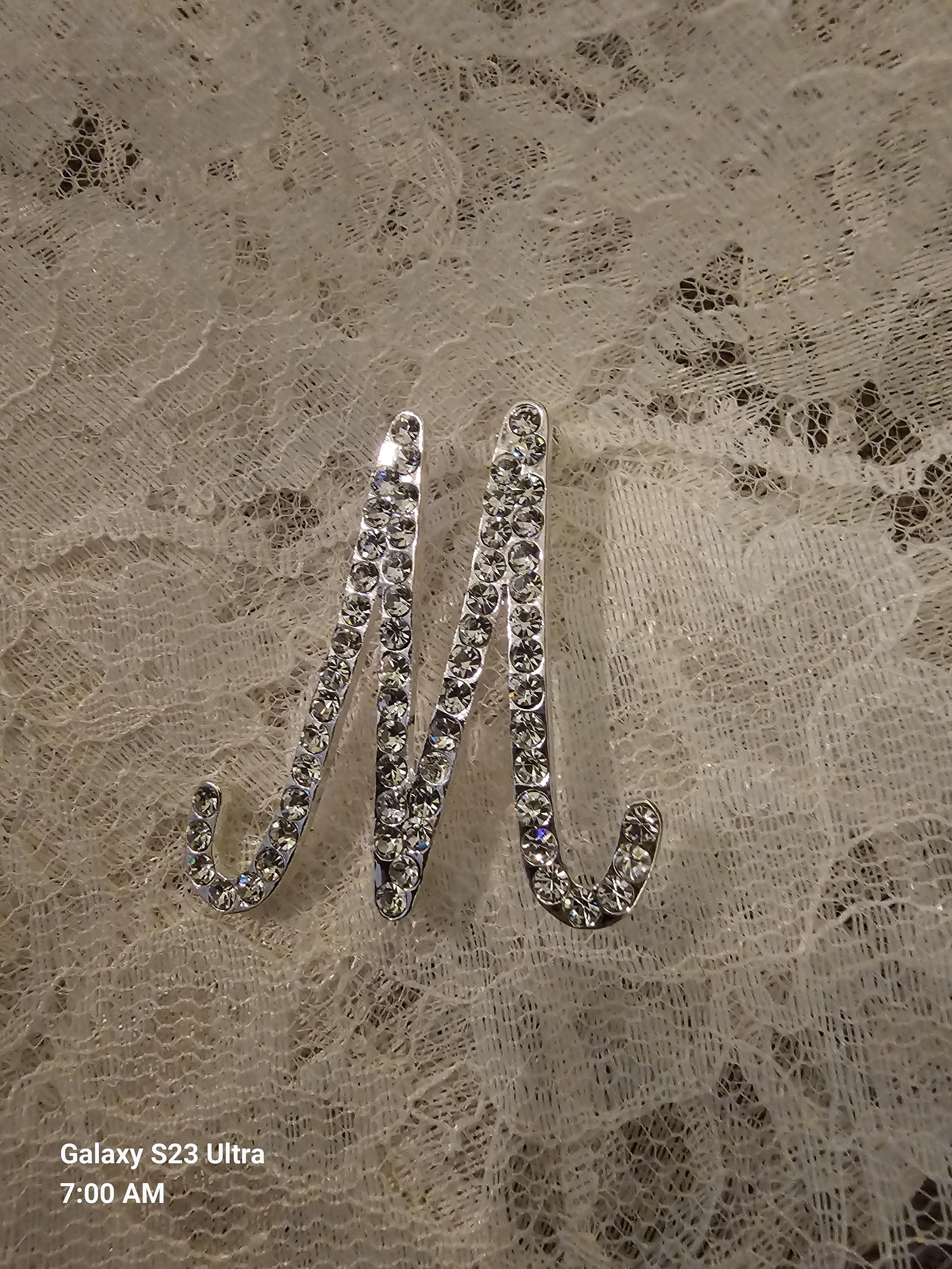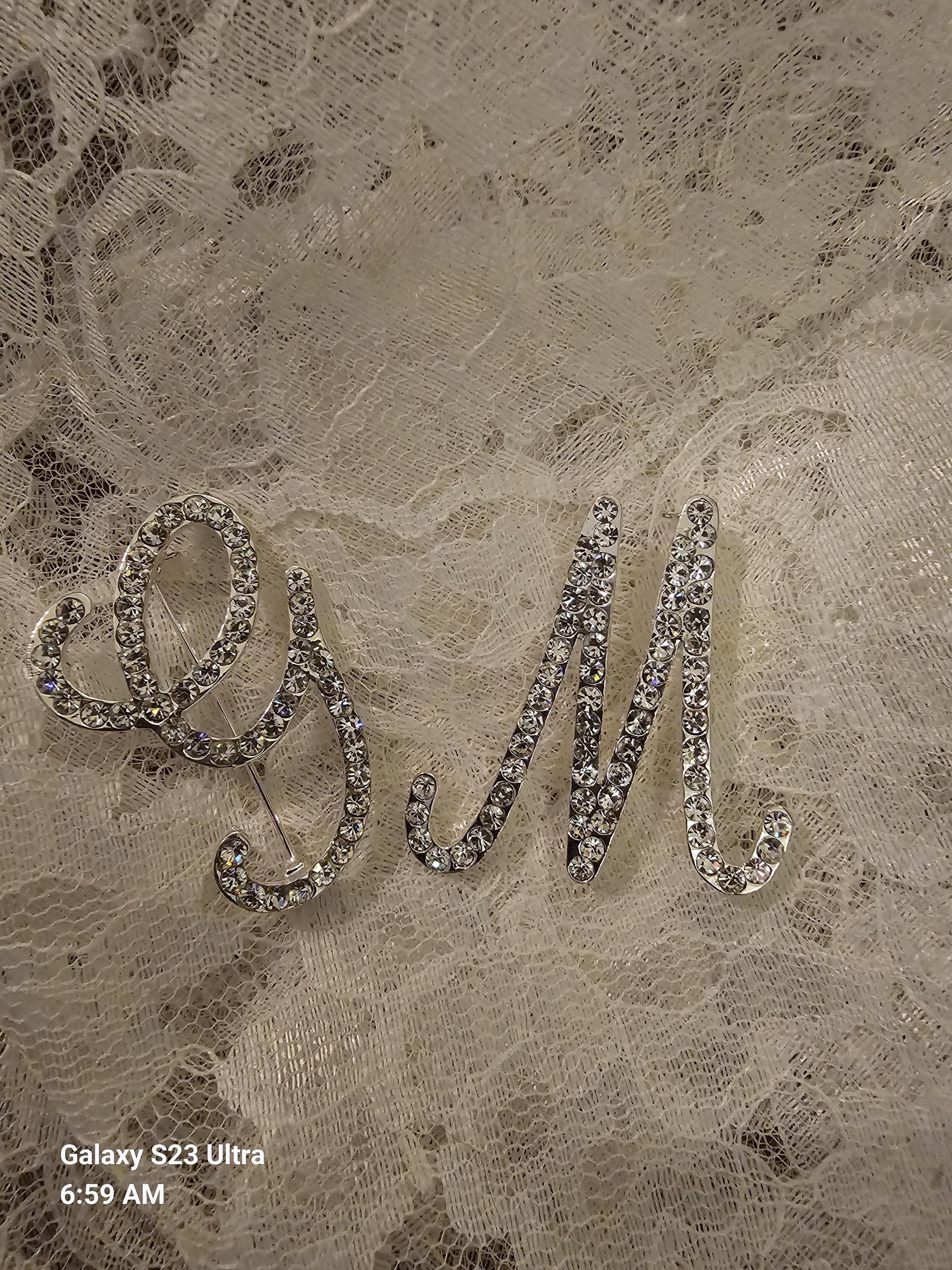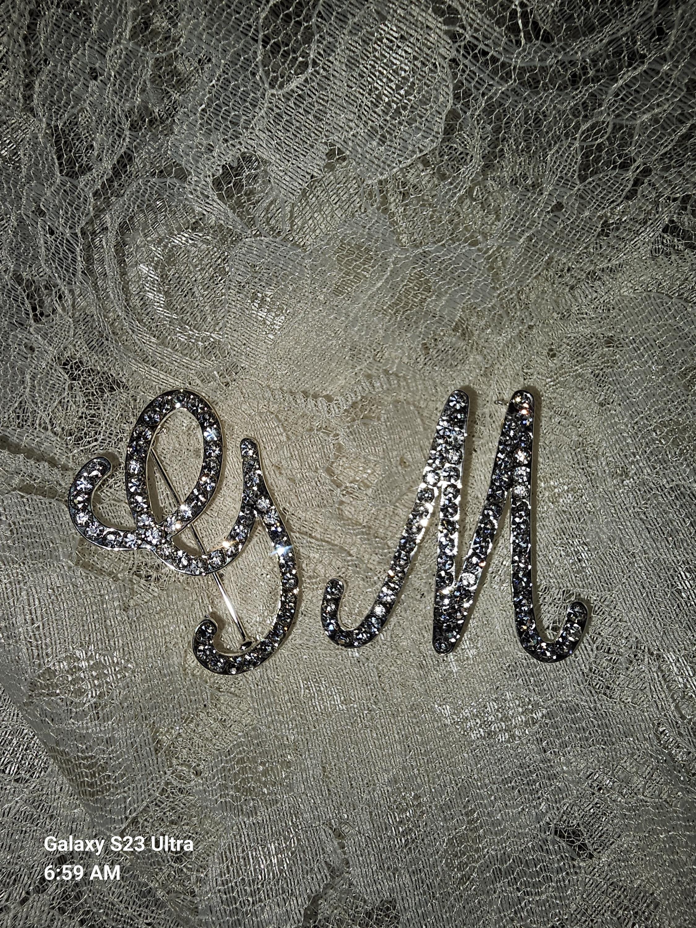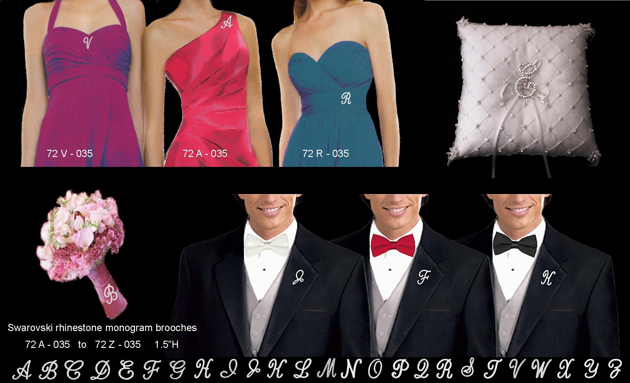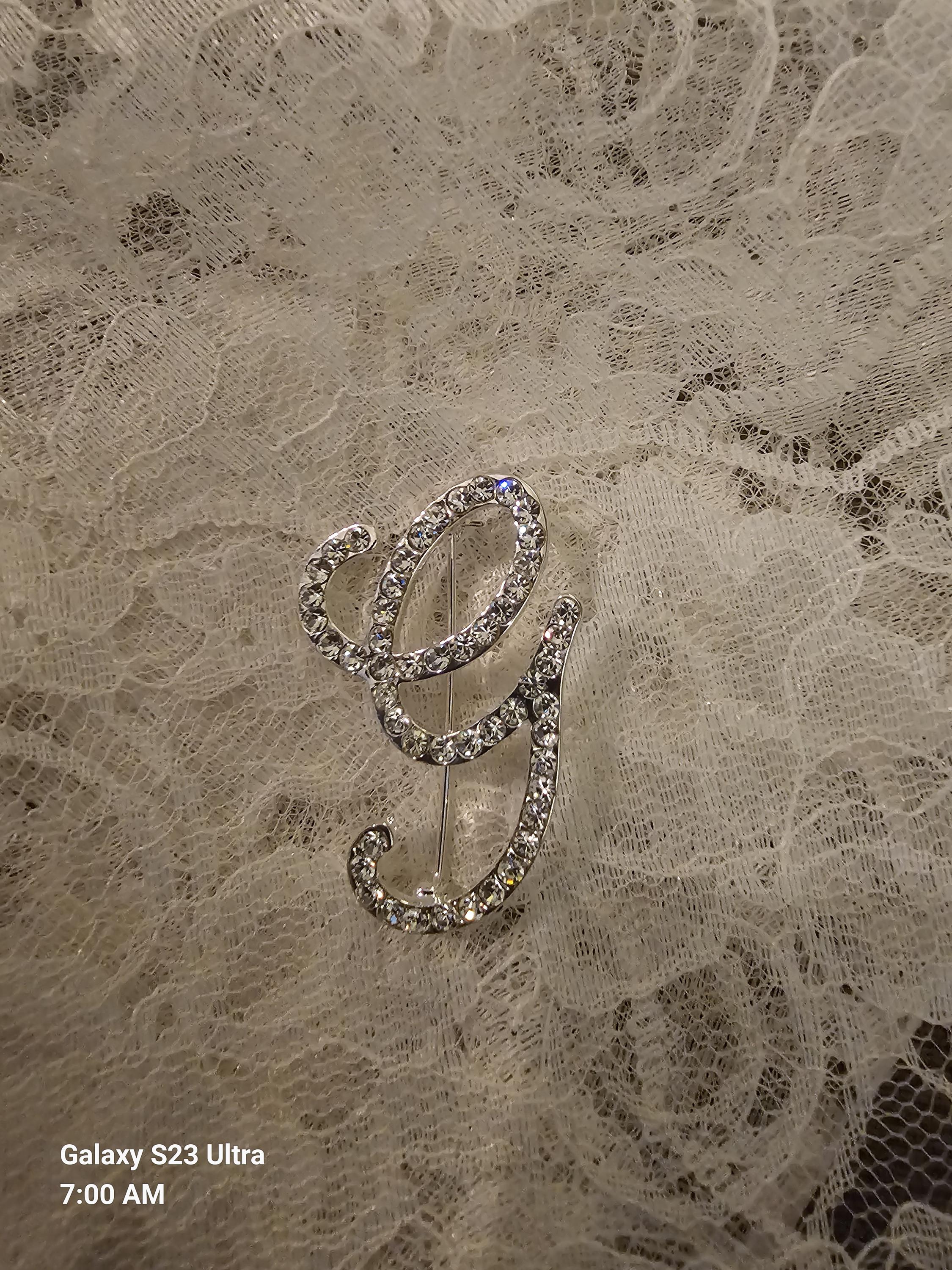 Beautiful Swarovski crystal initial brooch. "A" through "Z"! These can be used as accents on dresses, in lieu of boutineers, decoration on bouquets, or wherever! They are 1 1/2 inches tall. Please indicate the letter/letters you would like in the "Notes to Seller".