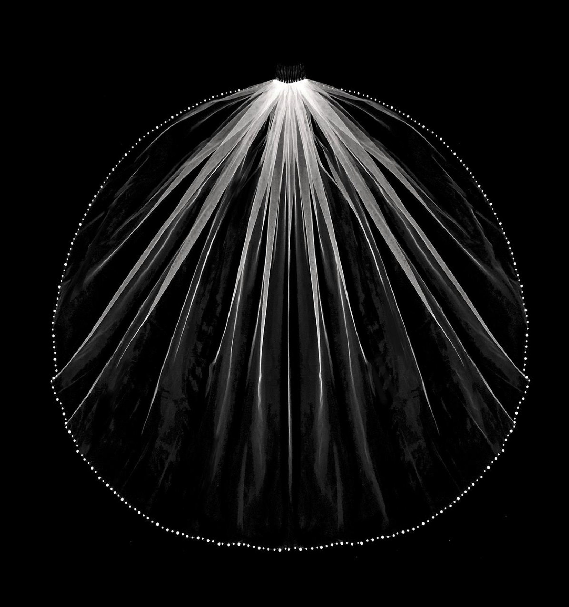 Charming pearl edge veil for flower girl or first communion. The pearls are of various sizes. The veil is 23 inches long and 54 inches wide and is available in white, diamond white, ivory, champaigne, blush and moscato.