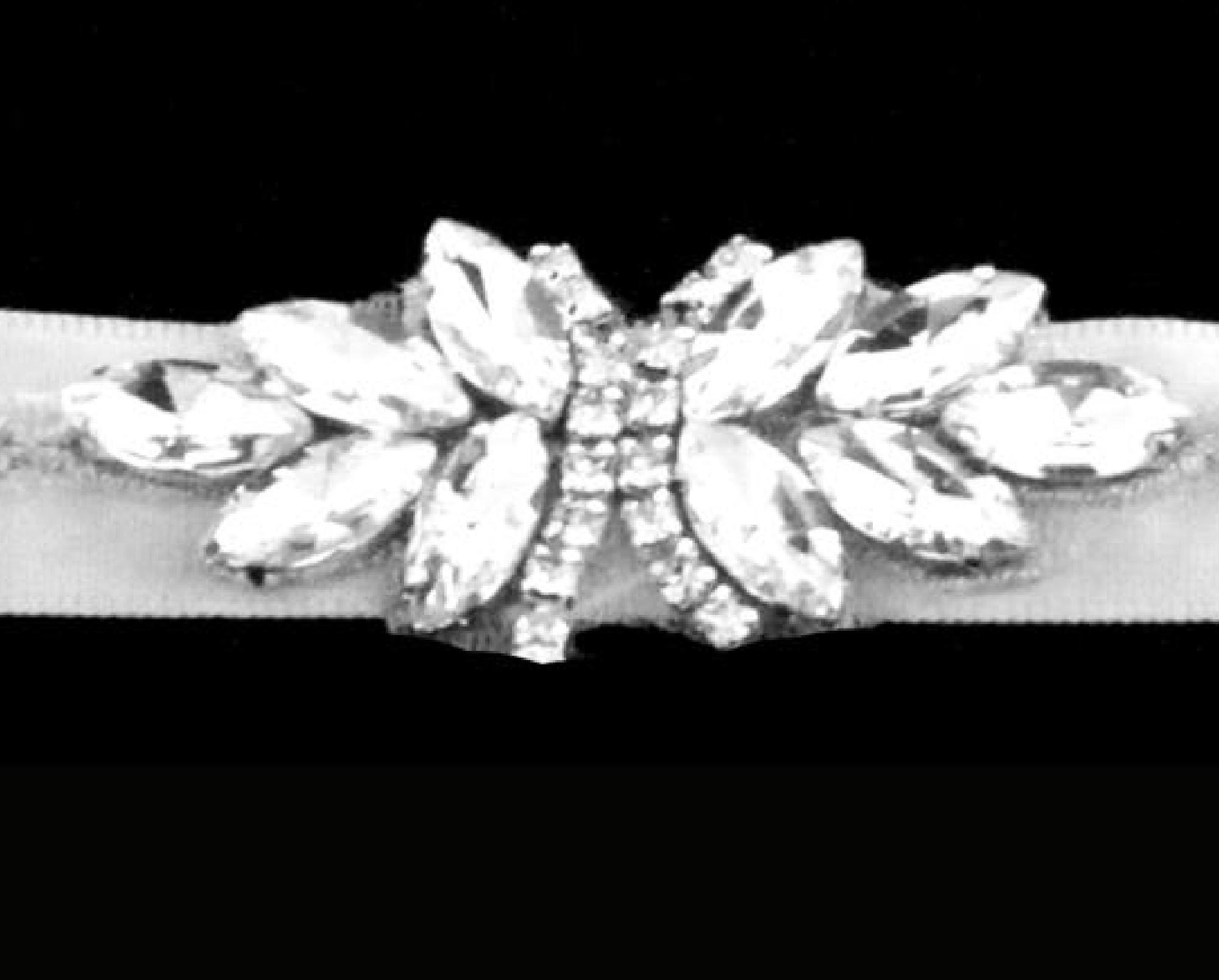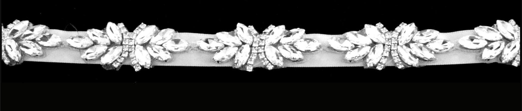The belt is available in 2 styles. One is an ivory ribbon backed 18 inch long design area. This option can be tied in the back or sewn into the side seams of your gown by your seamstress. The other option is also 1 inch tall and is 36 inches long. It is not on any ribbon.