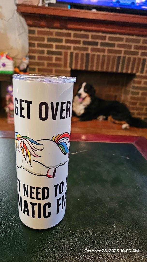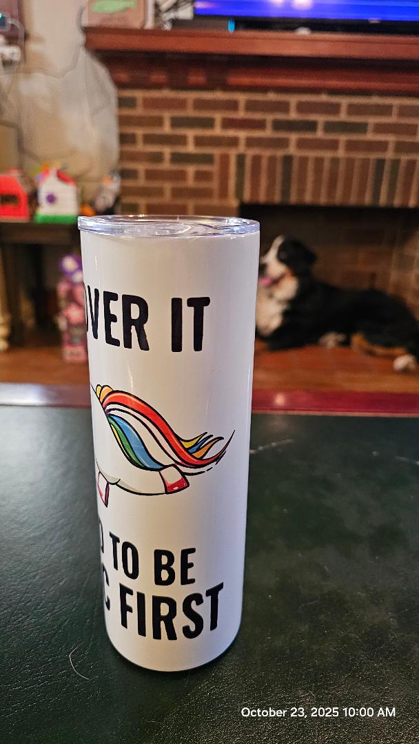 This is an insulated water cup that I made for my granddaughter. It is super cute and very much like she is! "I'll get over it I just need to be dramatic first" is exactly her! I think there are probably more 8 year old drama queens out there that would love this water bottle! I can personalize it also. I can also design something special just for you or yours. We will throw design ideas around until it is what you want.
