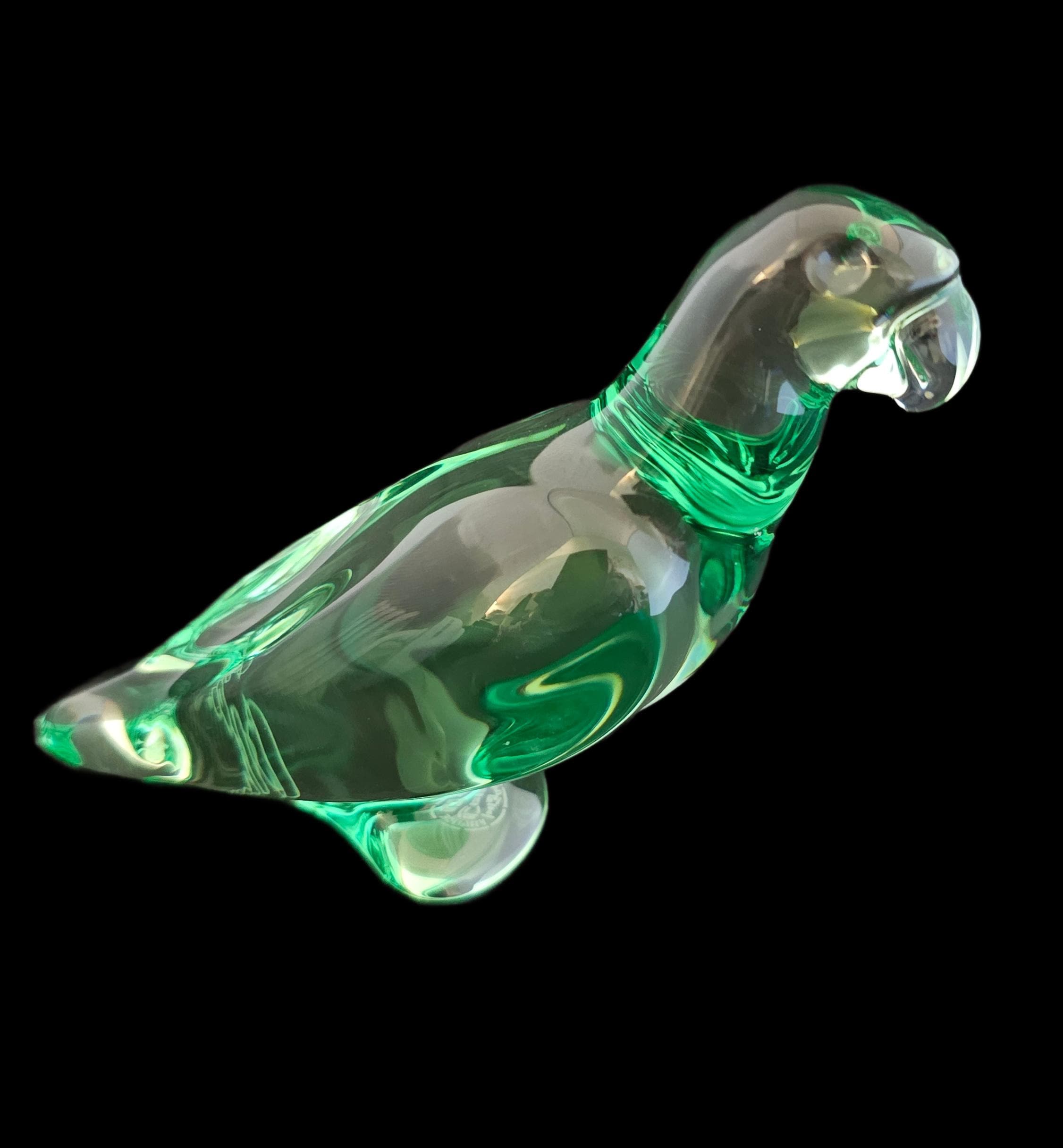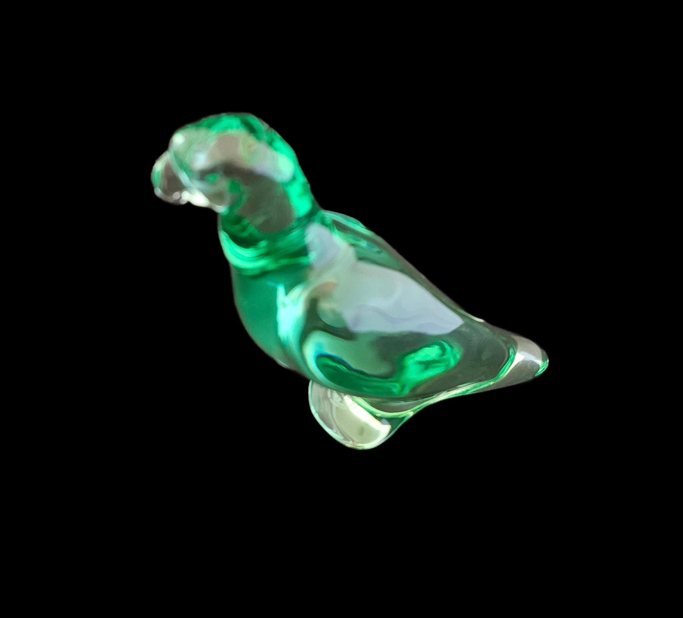 Green crystal parrot looks adorable on any shelf. It would make a terrific Mother's Day present for any bird fancier.